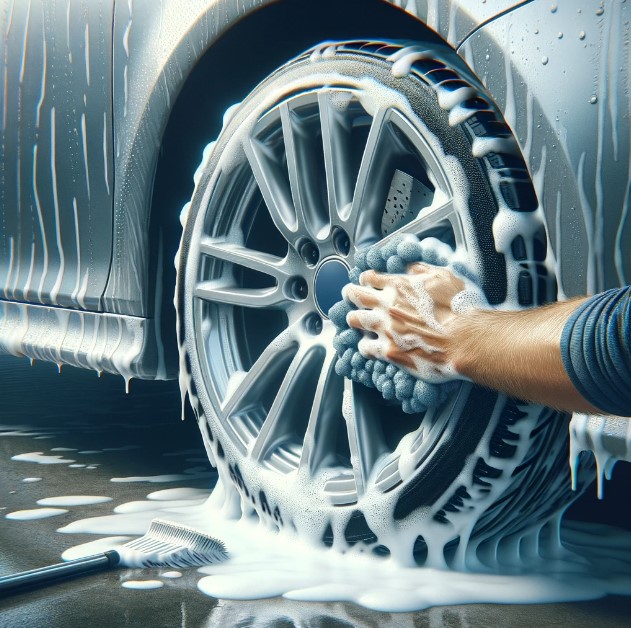 A safer and equally effective method is to use regular car wash soap, a rim brush, and a wash mitt.