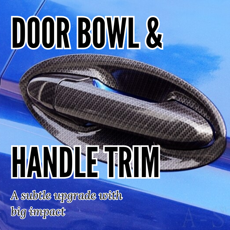 These stick-on carbon-fibre-style trims cover the recess behind your handle — the bowl where scratches usually happen.